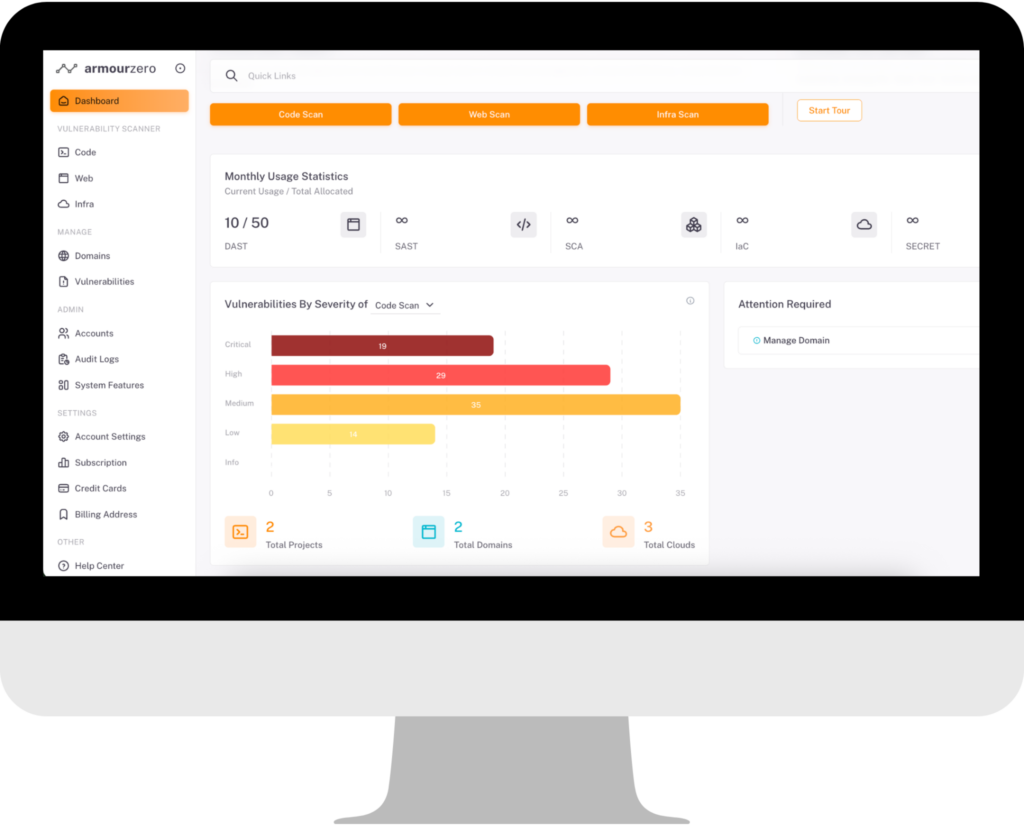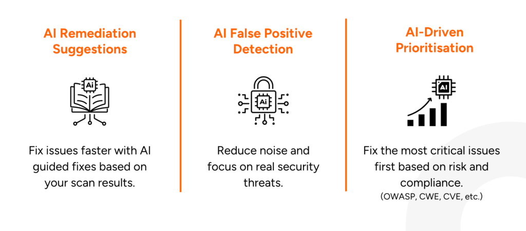 Pindai aplikasi web dan seluler, domain, dan infrastruktur cloud secara berkelanjutan untuk visibilitas penuh. Dapatkan wawasan real-time yang selaras dengan OWASP Top 10 dan selesaikan masalah lebih cepat dengan remediasi berbasis AI.