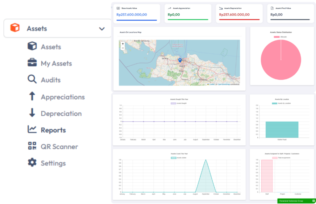 Pantau aset perusahaan dengan mudah, mulai dari pencatatan, masa manfaat, hingga jadwal perawatan.