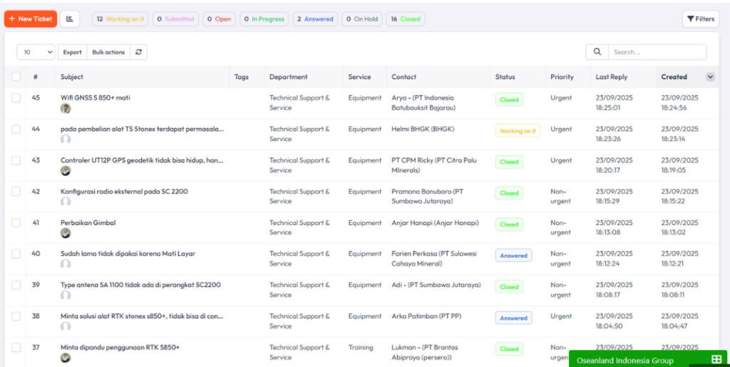 Fitur layanan pelanggan berbasis tiket yang memudahkan penanganan setiap masalah atau permintaan. Pelanggan bisa melacak status aduannya, sementara tim support bisa bekerja lebih cepat dan terarah. Hal ini memastikan pelayanan yang responsif dan kepuasan pelanggan yang lebih tinggi.