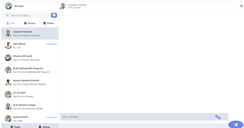 Fitur komunikasi internal real-time yang memudahkan koordinasi antar tim.