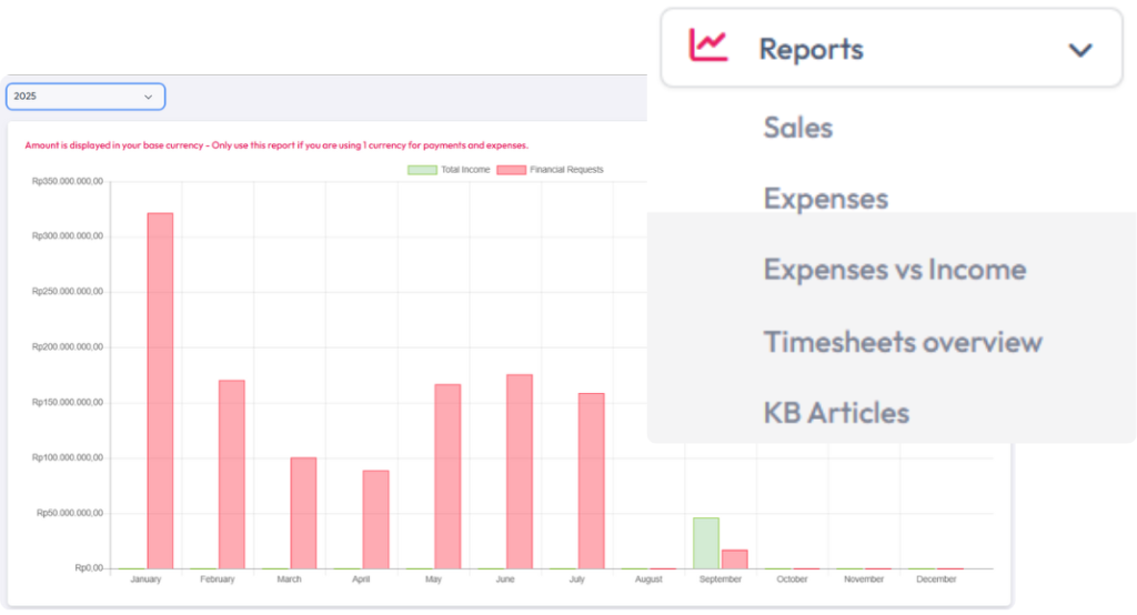 Hadirkan data yang lengkap dalam bentuk laporan dan grafik interaktif. Laporan dapat disesuaikan dengan kebutuhan, mulai dari penjualan, pembelian, keuangan, hingga performa karyawan. Fitur ini mendukung pimpinan perusahaan dalam mengambil keputusan yang tepat, cepat, dan berbasis data.