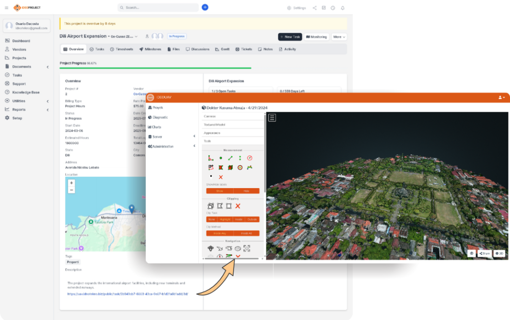 IdeoUAV adalah platform berbasis cloud yang dirancang untuk memproses data foto udara dari drone atau kamera menjadi peta digital dan model 3D dengan cepat, akurat, dan efisien.