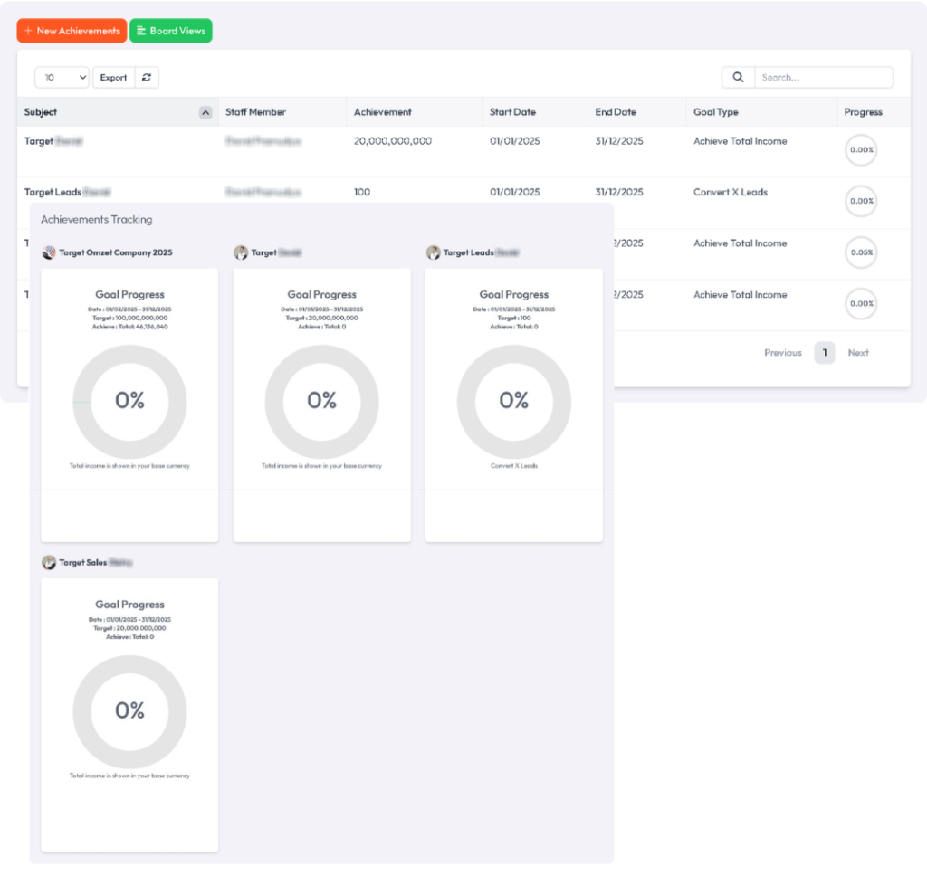 Fitur ini mencatat berbagai pencapaian tim maupun individu, mulai dari target penjualan yang tercapai hingga proyek yang berhasil diselesaikan.