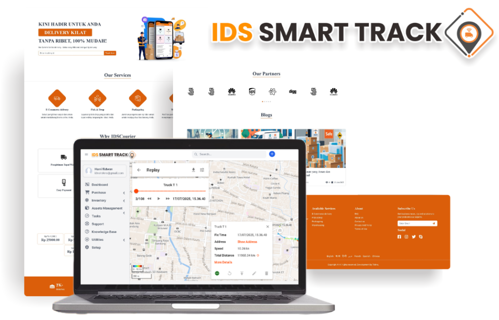 Integrasikan Ideo ERP dengan IDS Smart Track untuk memantau logistik dan armada secara real-time. Dapatkan visibilitas penuh atas pengiriman, kendaraan, dan distribusi langsung dari ERP Anda.
