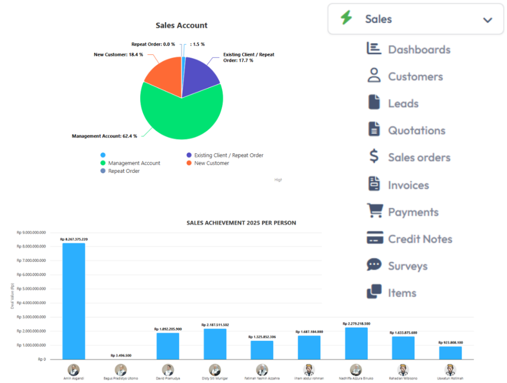 Fitur ini juga menyediakan analisis performa penjualan sehingga perusahaan dapat menyusun strategi yang lebih efektif untuk meningkatkan omzet.